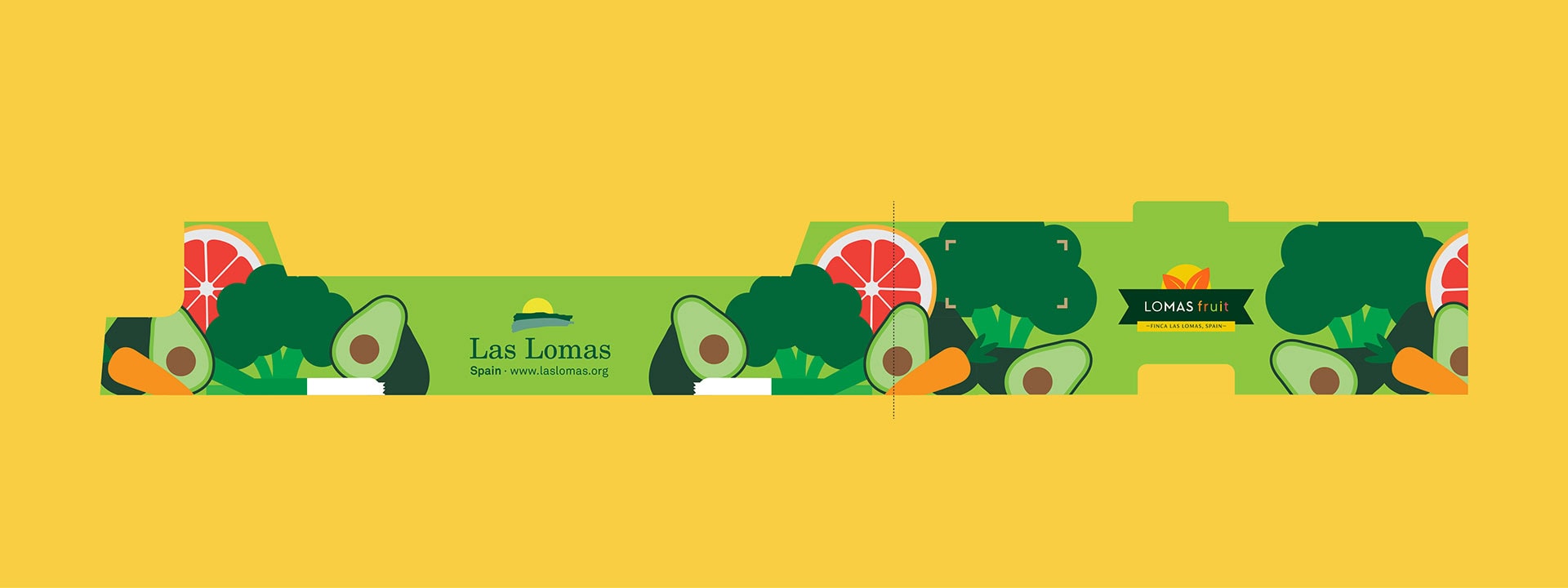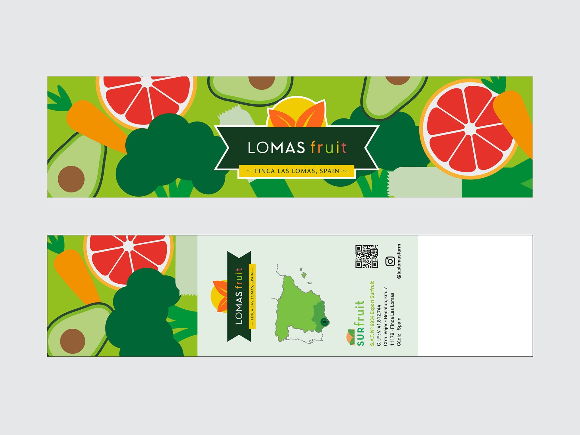 Rediseño de la marca Surfruit Diseño de logos Lomasfruit /Lomasgreen Caja para venta de producto Malla para venta de pomelo